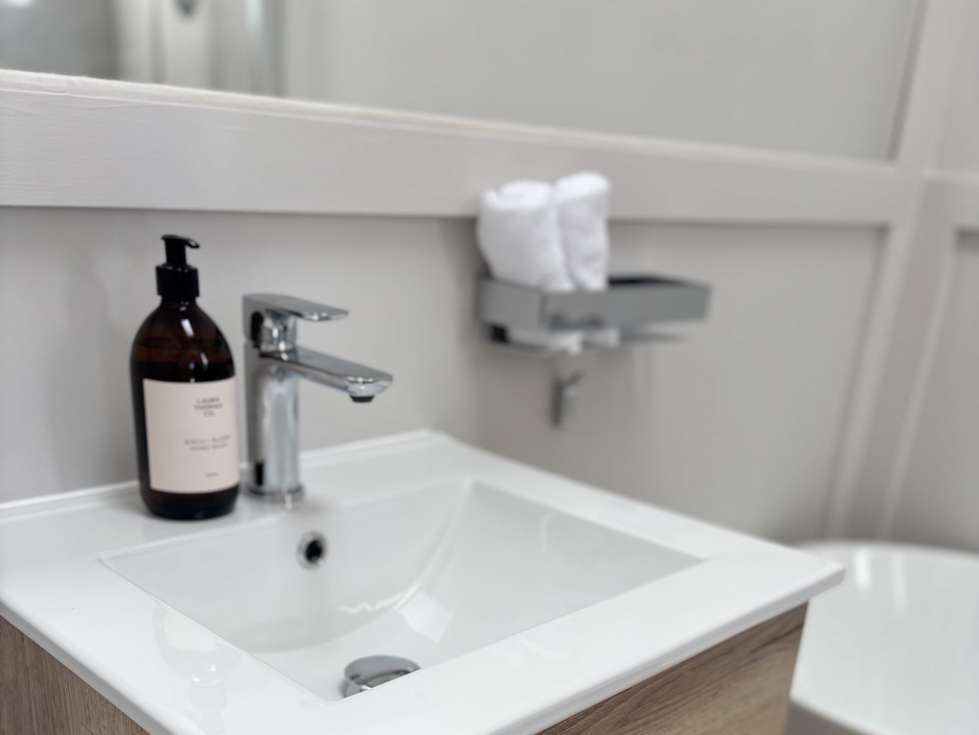 As you step in there is a small hallway with a foldaway seat to help you with removing your shoes and relaxing into the contemporary environment.