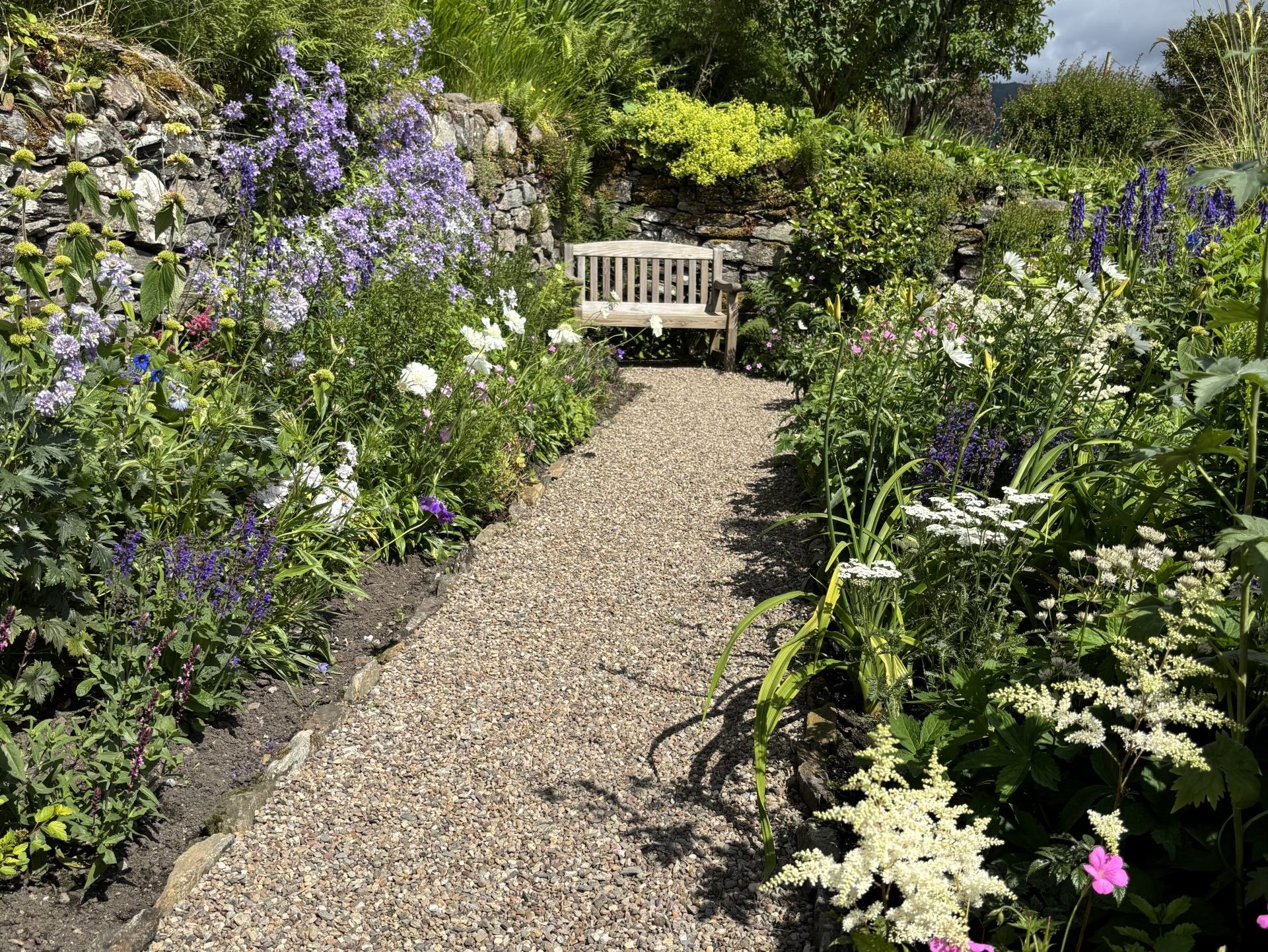 Outside the pretty little garden has a lawned area and a patio with lovely views to the hills in the west. You are most welcome to explore the wider expanse of garden surrounding the adjacent farmhouse and steading, where the herbaceous borders make for a gorgeous backdrop.